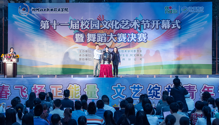 最后,共青团泸州市委副书记毛莉平、泸州移动公司江阳分公司副总经理杨彦、院党委副书记陈淑娟一同上台手触水晶球,正式启动了本届校园文化艺术节。