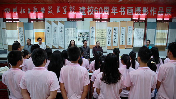9月26日,我院建校60周年书画摄影展开展仪式在一平房教室举行。学院副院长蒲开伦,院党委副书记陈淑娟,原泸州市民盟副主委、老校友付开智,以及有关部门负责人参加了开展仪式。仪式由学生处处长罗伦忠主持。