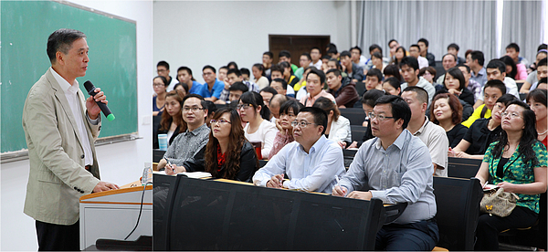 龚家竹总经理在讲座中回顾了自己的成长经历,向师生们分享了自己的求学趣事,在谈到母校和老师对自己的培养时,他说,自己能有今天的成绩,要特别感谢母校和老师的精心栽培,要感谢那个时代给了他成长锻炼的大好机会。他结合自己的专长,特别向参会的师生阐明了传统无机化工在国民经济中不可替代的重要地位,针对传统无机化工生产在循环经济下所面临的挑战,他指出未来的无机化工生产必须以循环经济为指导,将低碳经济和环保经济的结合,切实解决中国大陆无机化工发展中所面临的“囧大”问题。最后,龚家竹总经理对母校的学弟学妹们寄予了很大期望,希望他们能踏踏实实、认认真真地学好知识,搞好实践,为祖国无机化工事业的发展贡献自己的力量。