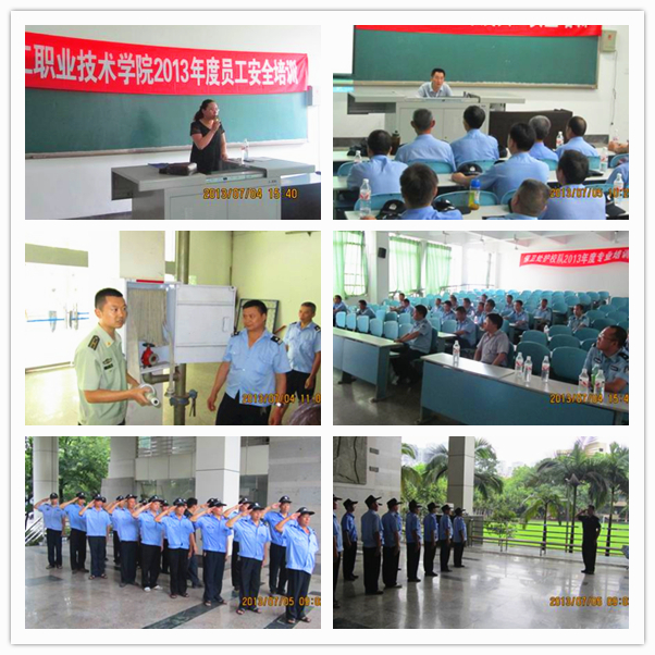 7月4日-5日,学院保卫处分别邀请了泸州市消防支队培训中心余然主任,龙透关派出所魏永刚所长、杨作伦警官,江阳区保安学校江智华副校长、雷春老师等专家到校对护校队队员进行了专业技能培训。培训内容涉及消防安全知识、消防器材、设施设备操作使用、日常事务及突发事件应急处理、队列训练等知识。