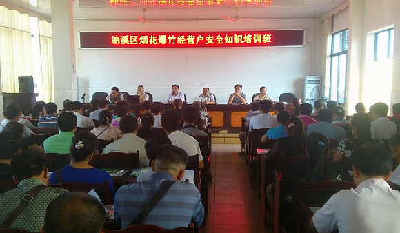 为切实增强烟花爆竹经营人员的安全意识,提高安全技能,进一步规范烟花爆竹经营秩序,加强烟花爆竹的安全管理,严防各类事故发生,提高各经营业户烟花爆竹应急救护与处置的知识和能力,确保人民群众生命和财产安全,维护社会和谐稳定,8月起,学院安全培训中心为泸州市纳溪区各乡镇依序举办烟花爆竹经营户安全知识培训。纳溪全区从事烟花爆竹经营的800余位业主将分批次参加培训。