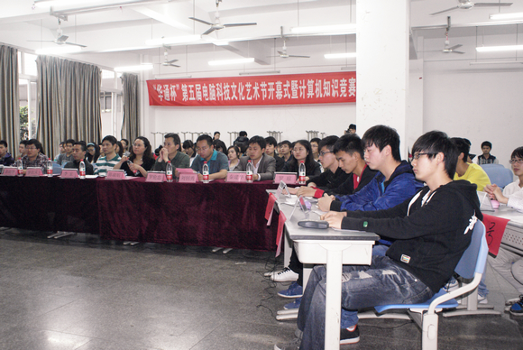 5月2日下午,“华通杯”第五届电脑科技文化艺术开幕式暨计算机知识竞赛决赛在实训楼B区104教室隆重举行。学院领导、学生处、信息工程系负责人和系学生会干部及学生代表共计150余人观摩了此次比赛。