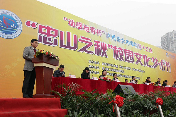 泸州市人民政府副市长马宗慧向“忠山之秋”校园文化艺术节的成功开幕表示祝贺