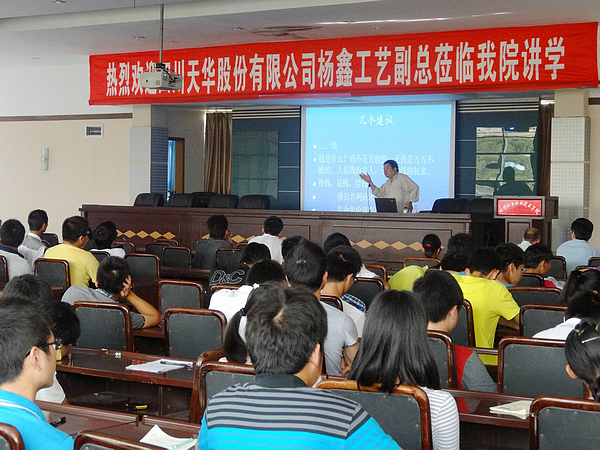 9月19日下午,学院邀请了校友、四川天华股份有限公司工艺副总工程师、调度中心杨鑫主任,在行政楼五楼为2012级应化专业新生进行了讲学。