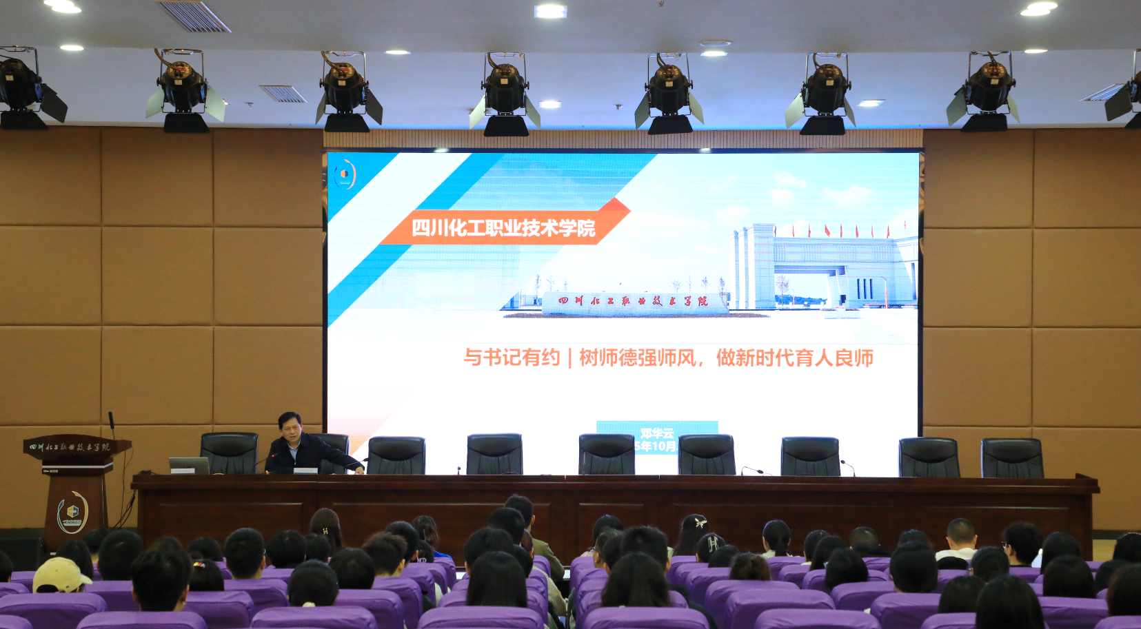 10月29日下午,“与书记有约”活动走进2025年新入职教师队伍,学校党委书记邓华云以“树师德强师风,做新时代育人良师”为题,为全体新入职教师讲授入职第一课,引导大家锚定职业方向、明晰使命担当,在职业教育的新征程上迈出坚实步伐。