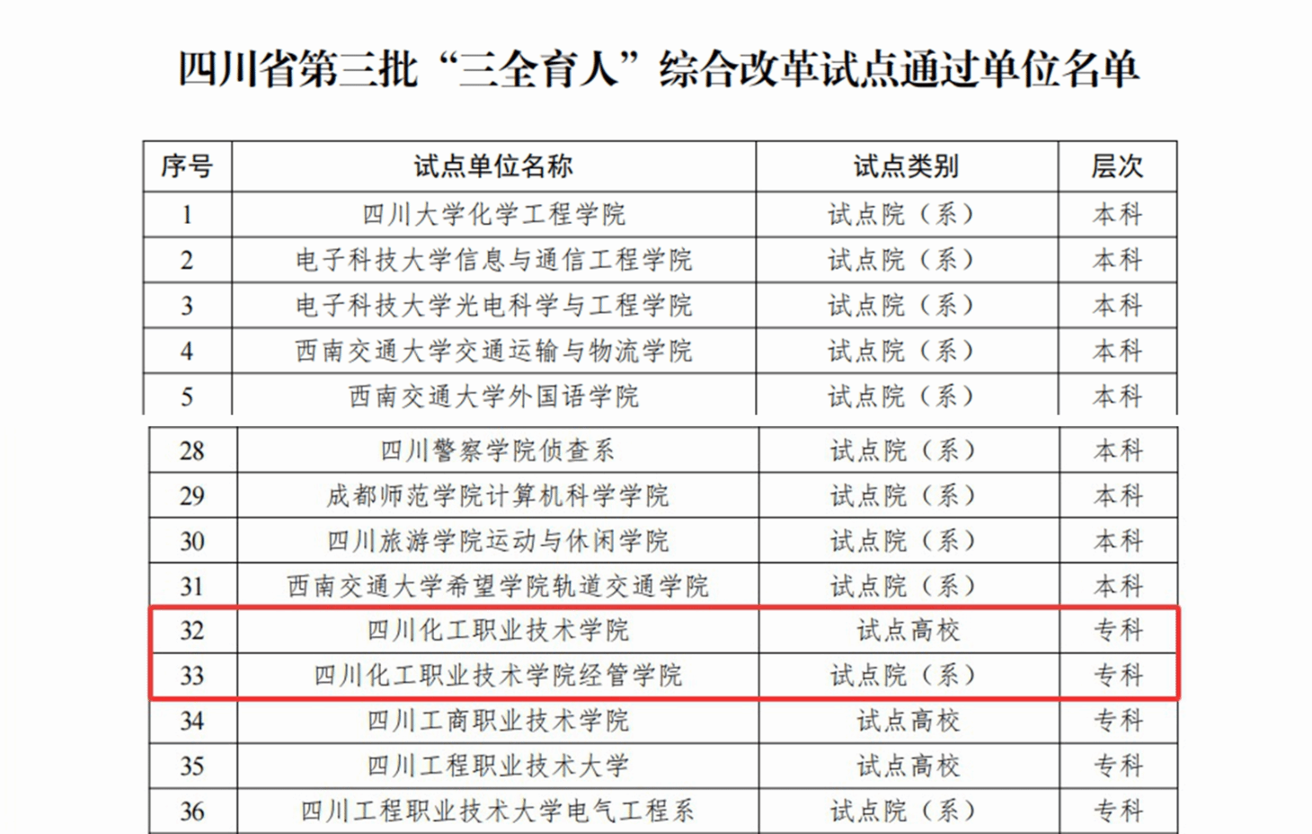 近日,中共四川省委教育工委办公室公布了四川省第三批“三全育人”综合改革试点总结评审结果,学校上榜四川省“三全育人”综合改革试点高校,经济管理学院上榜四川省“三全育人”综合改革试点院(系),标志着我校在构建全员、全过程、全方位育人格局方面取得了阶段性重要进展。