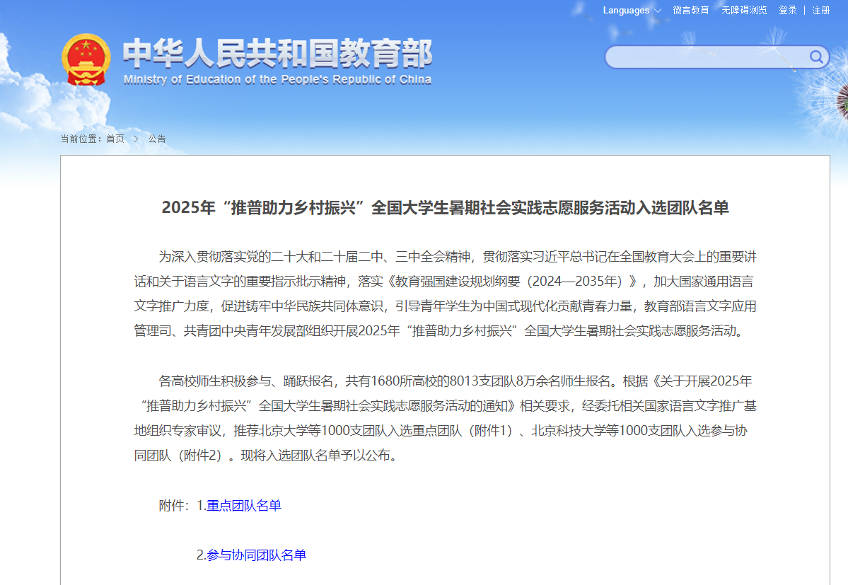 近日,教育部公布了2025年“推普助力乡村振兴”全国大学生暑期社会实践志愿服务活动入选团队名单,学校应用化工学院“推普筑梦・多维振兴”实践团历经层层筛选,从全国1680所高校的8013支报名团队中脱颖而出,成功跻身全国大学生暑期社会实践志愿服务团队行列。