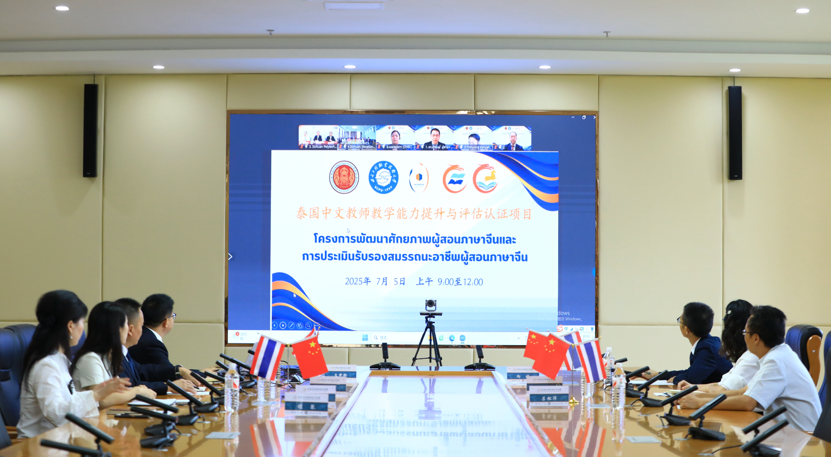7月5日,2025年泰国中文教师教学能力提升与评估认证项目线上开班仪式顺利举行。泰国职业教育委员会助理秘书长苏拉蓬・厄姆乌泰博士、泰国北部职业教育促进与发展中心主任提提蓬・班雅坤博士、泰国进步丝路学院院长海洋等泰方代表,四川工程职业技术大学副校长向守兵,学校党委副书记、院长文申柳,党委委员、副院长向桢等中方院校代表出席仪式。本次活动吸引泰国全境逾110名中文教师齐聚线上,仪式由“武侯工坊”泰方负责人吴春华主持。