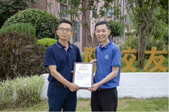 在德阳校友园前举行了德阳校友园移交仪式,向桢向王小荣颁发了校友园捐赠证书,表达了学校对德阳校友们为母校建设与发展所给予支持的诚挚感谢。