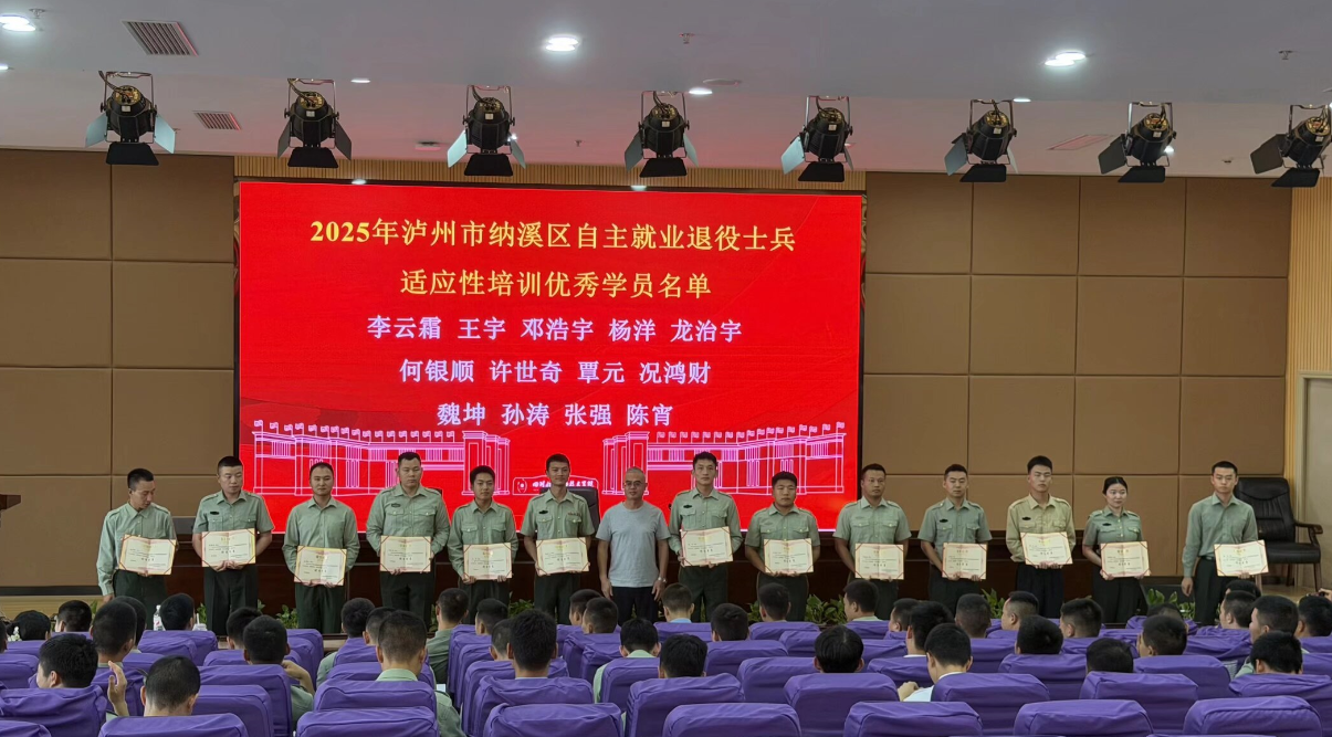 邓家彬向泸州市纳溪区退役军人事务局致以衷心感谢,对其在本次培训筹备与开展过程中的大力支持与悉心指导表示诚挚敬意,向圆满完成培训学习任务、并取得优异成绩的全体学员表示热烈祝贺,勉励大家将所学所获转化为推动自身发展、助力地方建设的实际能力。自主就业退役士兵优秀学员代表何银顺在发言中表示,此次培训让自己明确了转型方向、找准了发展定位。未来,他将立足军旅生涯锤炼的过硬作风与培训所学的实用技能,主动挖掘自身优势、激活发展潜力,以昂扬姿态投身地方经济建设实践。张朝军宣布了培训优秀班委干部与优秀学员表彰名单,向获评优秀的个人表示热烈祝贺,勉励全体学员以优秀为榜样,将培训所学转化为干事创业的实际能力;同时,向为培训高效有序开展付出大量心血的学校师生致以诚挚感谢,肯定了大家在教学组织、后勤保障等工作中展现的专业素养与责任担当。