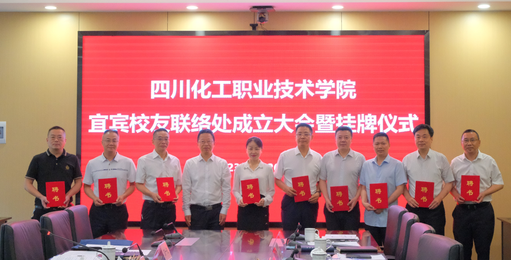 文申柳向宜宾校友联络处授牌,蒲开伦向宜宾校友联络处成员颁发了聘书。