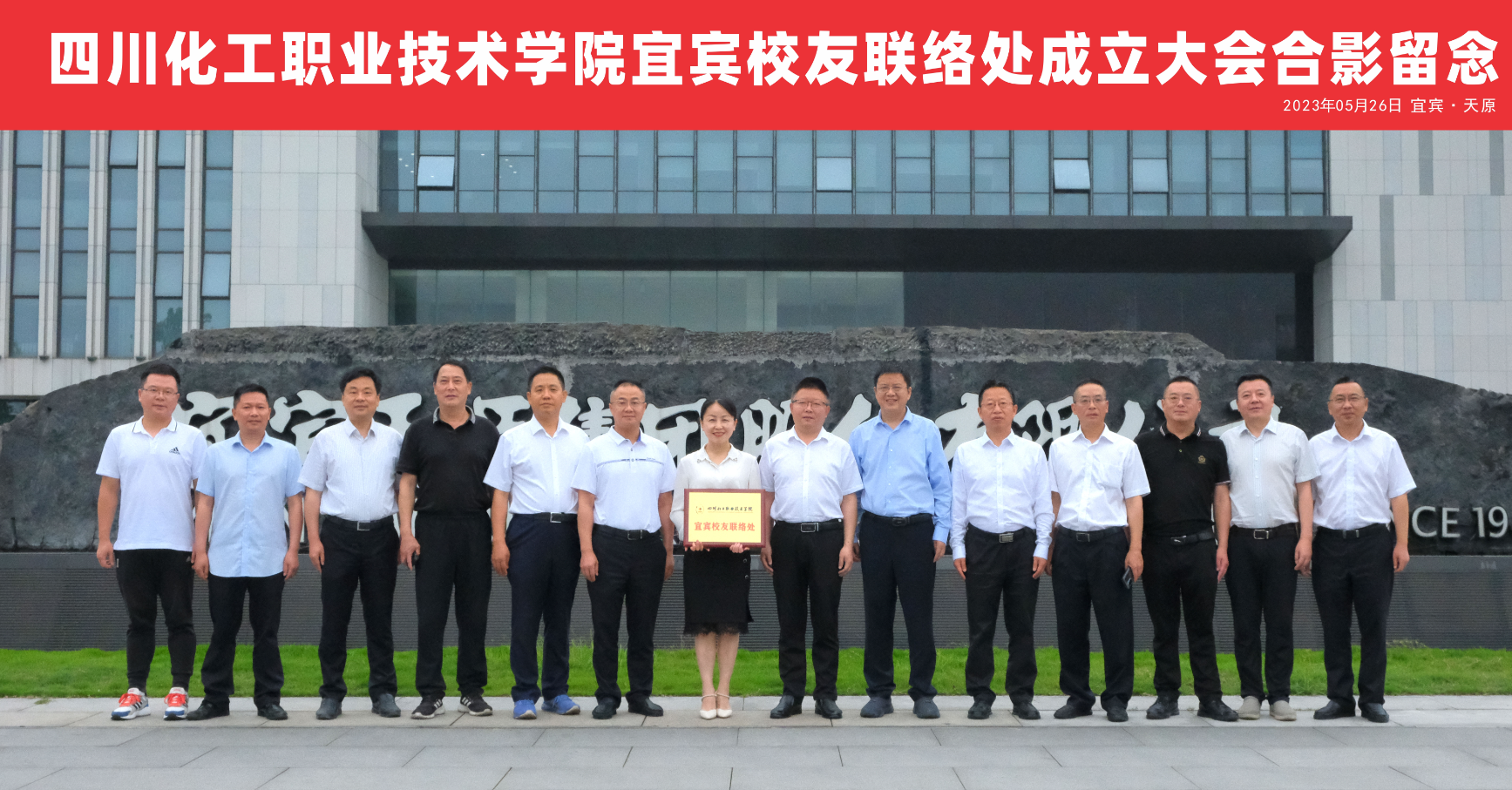 5月26日,学校宜宾校友联络处成立大会暨挂牌仪式在宜宾天原集团股份有限公司举行。宜宾天原集团股份有限公司党委书记、董事长、学校杰出校友罗云,学校党委副书记、院长文申柳,党委委员、副院长蒲开伦出席大会。仪式由宜宾天原集团股份有限公司营销总顾问徐骏主持。