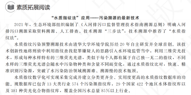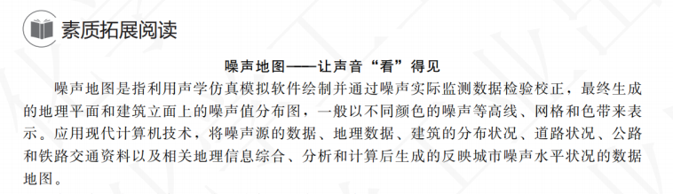 融入行业“四新”实现资源迭代升级。例如在教材68页,引入了素质拓展阅读资料——“水质指纹法”应用,污染溯源的最新技术,引导学生探索大数据、AI在污染溯源中的应用;又如在教材176页:设“噪声地图”拓学“声学仿真模拟软件”等新技术。这些资料展现了环境监测领域生动实践与伟大成就,通过引导学生阅读,及时更新对环境监测的新技术、新标准、新规范,如何在助力科技强国的发展中展现力量,培养学生技能报国的素养。