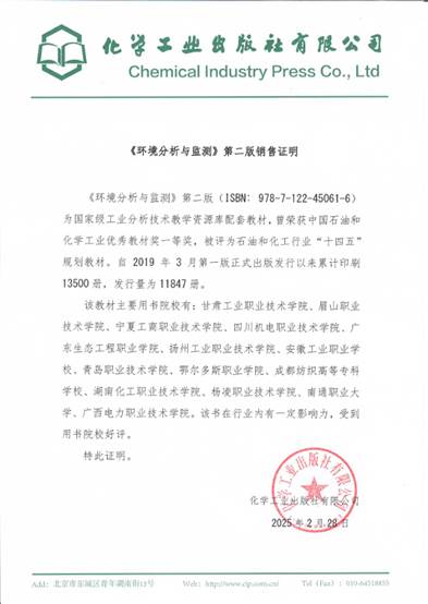 2022年,教材助力四川化工职业技术学院的参赛作品《生活污水中氨氮的测定》,在全国职业院校技能大赛教学能力比赛高职专业课程二组比赛中,荣获二等奖;另外,在四川省、广东省、江苏省职业院校技能大赛教学能力比赛等省级奖励6项。