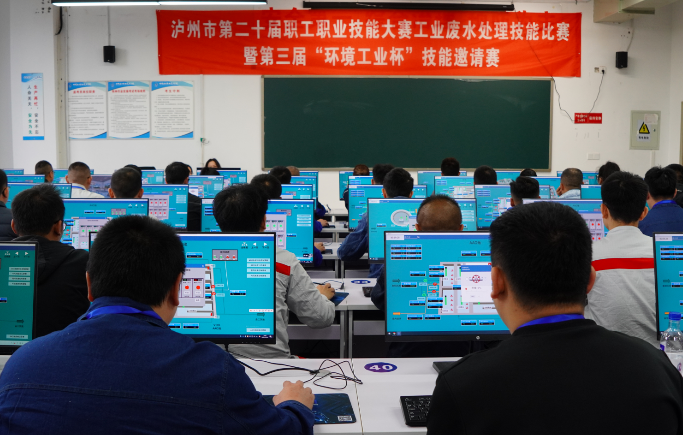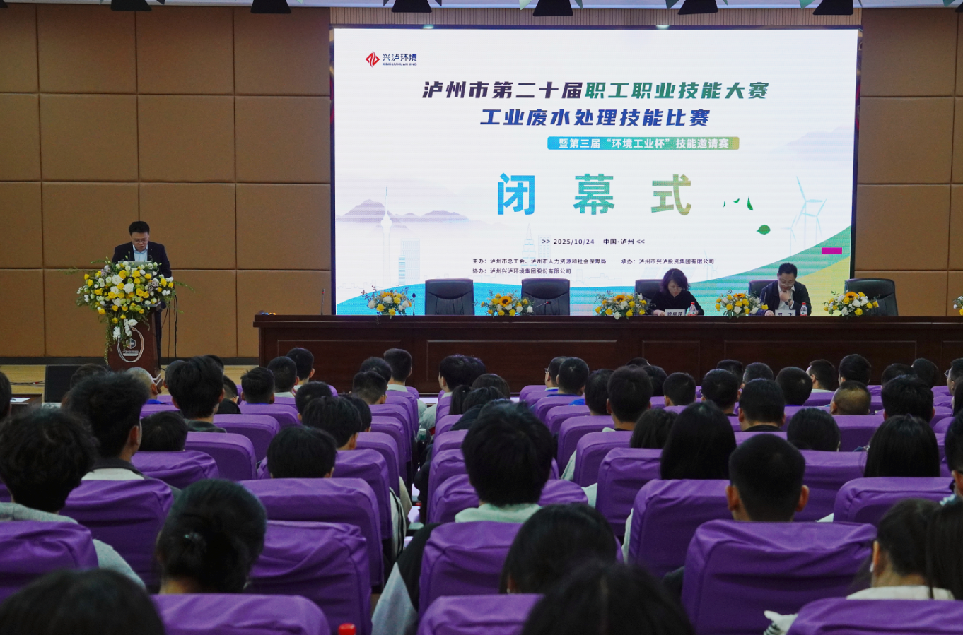 2025年10月24日,泸州市第二十届职工职业技能大赛工业废水处理技能比赛暨第三届“环境工业杯”技能邀请赛在学校顺利举行。大赛汇聚了来自泸州老窖股份有限公司、泸州北方化学工业有限公司、四川天华化工集团股份有限公司、四川泸天化环保科技股份有限公司、泸州市兴泸环保发展有限公司等11家环保领域重点企业的50余名技术精英同台竞技,全面展现了泸州市工业废水处理领域的技术实力与人才储备。市总工会党组成员、副主席郑智,市人社局职建科科长吴成虎,学校党委副书记、纪委书记、工会主席郑辅春,党委委员、副院长徐丽萍,兴泸投资集团有限公司党委副书记、工会主席陈兵,公司党总支副书记、总经理朱志鹏等领导分别出席大赛开幕式和闭幕式。