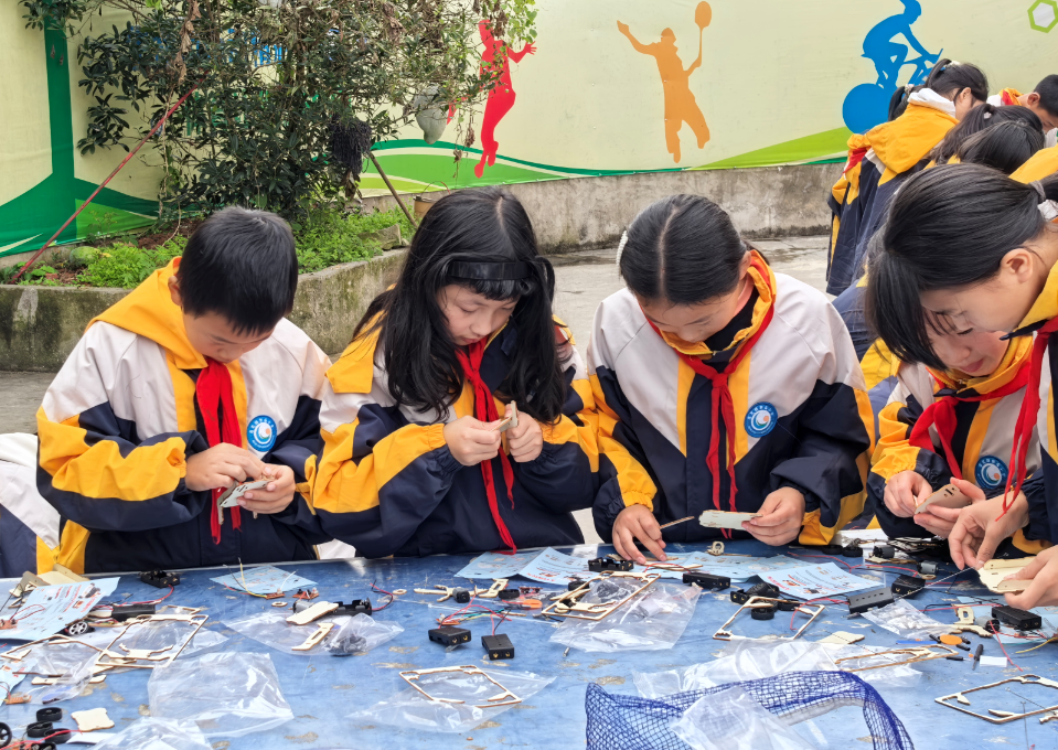 学校针对不同年级学生的认知特点,精心设计了丰富多样的互动体验项目。对于五、六年级的学生,志愿者们组织了拼装动力小车及小车竞速比赛,孩子们在动手实践中学习机械原理,比拼中感受速度与激情;对于其他年级的孩子们,安排了VR自然科普体验、无人机模拟飞行、神奇的“颜色变变变”化学实验等项目。惊险有趣的“火焰掌”科学表演更是让孩子们在惊叹中领悟科学的奇妙与力量,将科学的魅力直观地呈现在孩子们面前。