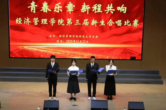 11月12日,经济管理学院在酒谷湖校区醇和楼107报告厅成功举办第三届“青春乐章,新程共享”新生合唱比赛。此次活动以歌声为纽带,传递积极向上的校园精神,为2025级新生搭建了一个展示自我、交流共进的绚丽舞台。经济管理学院党总支副书记江劲和各班级辅导员参加本次活动。