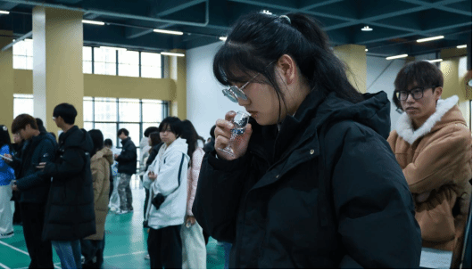 第一关“闻香型”:同学们通过嗅觉辨别白酒香型,在缭绕酒香中捕捉风味特征,展现专业基础;
