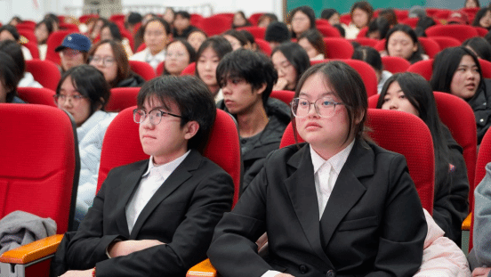 在互动交流环节,工作人员为每位观众发放便利贴。大家纷纷提笔,写上专业学习、生涯规划等方面的疑问,并有序粘贴至会场前方的白板上,三位国奖获得者随机抽取具有代表性的问题,耐心细致地一一解答,现场互动氛围热烈非凡。通过提问与解答的双向交流打破了经验传递的单向壁垒,形成了思想碰撞、智慧交融的良好氛围,进一步激发了同学们对标先进、追求卓越的内生动力。