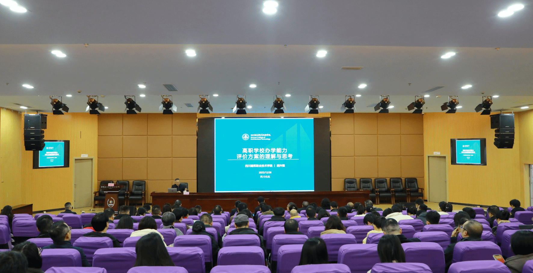 为切实做好四川省高职院校办学能力评价相关工作,深入推进学校内涵发展、特色发展与创新发展,全面提升学校办学水平,12月26日,学校特邀四川建筑职业技术学院原院长胡兴福教授作专题培训。学校在家领导班子成员、中层干部、二级学院教学科长、各专业负责人及承担评价任务的相关职能部门人员参加培训。会议由学校党委副书记、院长文申柳主持。