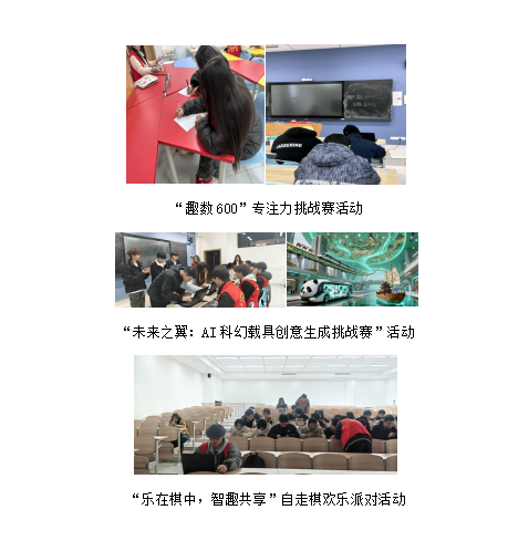 学习竞技部开展“趣数600”专注力挑战赛,培养严谨学风;综合事务部举办“未来之翼:AI科幻载具创意生成挑战赛”,300名学生运用AI图像生成技术设计未来交通工具,探索科技与艺术融合新路径;“乐在棋中,智趣共享”自走棋欢乐派对则在策略博弈中锻炼逻辑思维与协作能力。