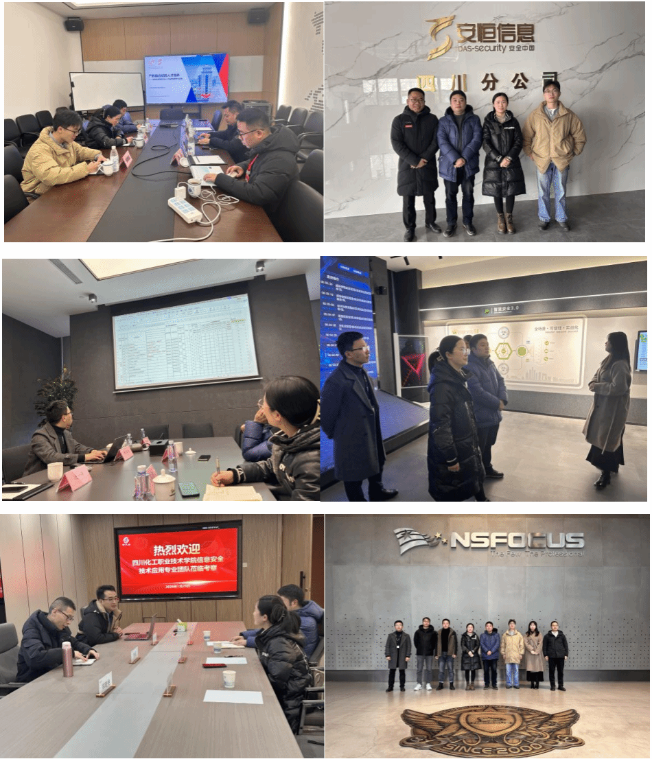 2025年1月27日至30日,数字经济学院信息安全技术应用专业教师团队先后赴绿盟科技、安恒信息、四川智天远科技有限公司等行业重点企业,开展了为期四天的专业建设专项调研与毕业生就业回访活动。