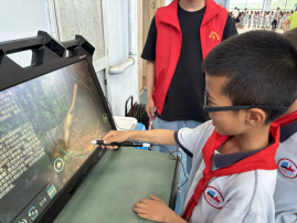 活动现场,VR科普基地团队带来了PICO眼镜、一体机等先进设备和丰富的科普内容。在志愿者的耐心指导下,孩子们戴上VR设备,仿佛身临其境:乘坐“疯狂过山车”时,孩子们时而紧张尖叫,时而兴奋欢笑,体验着速度与刺激;走进“恐龙博物馆”,逼真的恐龙形象让孩子们仿佛穿越到了远古时代,近距离观察恐龙的生活习性;在“宇宙探索”中,孩子们遨游在浩瀚的宇宙空间,感受着星空的神秘与美丽;“地震演练”和“火灾逃生”项目则让孩子们在模拟场景中学习到了应对灾害的知识和技能,增强了自我保护意识。