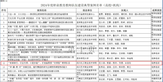 2月13日,四川省教育厅印发了《关于印发2024年度职业教育教师队伍建设典型案例的通知》(川教函〔2025〕20号),我校机械工程学院申报的案例《“标准牵引、行业引领、三室多能”,打造高素质“双师型”教师队伍》入选我省2024年度职业教育教师队伍建设典型案例。