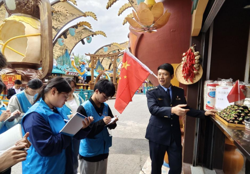 开幕仪式结束后,食安特派员在区市场监管部门工作人员的带领下对山河明月醉酒城景区的商户进行食品安全突击检查。在检查过程中,他们仔细观察、认真记录商户在食品原料贮存、购进检验、分类放置和餐饮具消毒等方面是否符合食品安全操作规范,并向商户讲解可能存在的食品安全隐患,提高食品生产经营单位主体责任意识和管理能力。