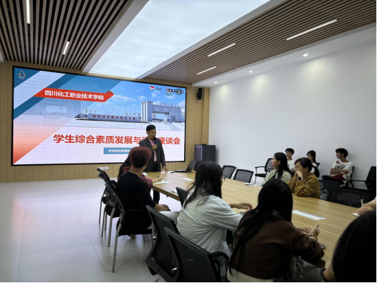 最后,学生处处长邓子萍强调,同学们要德智体美劳全面发展,均衡发展,学校也将不断优化学生综合素质发展与评价体系,使之更加科学合理,更能反映学生的实际能力和综合素质。同时,他希望学生代表们能传达本次座谈会精神,征求班级同学意见。学生综合发展中心下发《四川化工职业技术学院学生综合素质发展与评价方案征集意见稿》,各班积极学习,广泛讨论,收集意见。