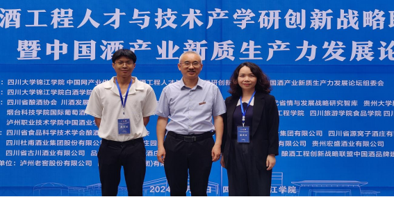 大会以“守正创新,融合发展”为主题,汇聚相关领导、酒业专家、企业家,围绕新消费时代酒业发展的现状与未来趋势、把握新质生产力契机推动行业转型升级、持续构建酿酒产学研商一体化、重塑中国酒品牌价值、酒庄营销新探索等热点话题,聚力聚智共同推动中国酒业的健康繁荣。川酒学院副院长哈霞博士及酿酒技术教研室吴双从主任应邀参加本次论坛,会议中与四川大学锦江学院白酒学院院长、酿酒工程创新战略联盟主席张文学教授及其他与会学校单位、领导嘉宾和企业代表进行了深入沟通和交流。