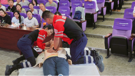 5月22日学员们完成了线上理论学习,5月23日参加了为期一天的线下实际操作培训和考试,在理论授课环节,培训讲师围绕红十字运动基本知识、应急救护概论、高质量心肺复苏(CPR+AED)、气道异物梗阻急救、创伤救护(止血、包扎等)、意外伤害急救(烧烫伤、骨折、溺水等)等知识进行了细致讲解,帮助大家在遇到突发事件时能够准确迅速采取有效急救措施,提高风险防范意识。在实际操作环节,培训讲师亲身示范心肺复苏CPR和体外除颤仪(AED)的实际操作,清晰演示了成功救护全过程,让大家意识到时间就是生命,掌握一定的急救知识至关重要,学员们积极参与心肺复苏、创伤包扎等实操演练中;最后,经过一天的培训,学员们进行了实操考核和理论考试,成绩合格者将获得红十字救护员证书。
