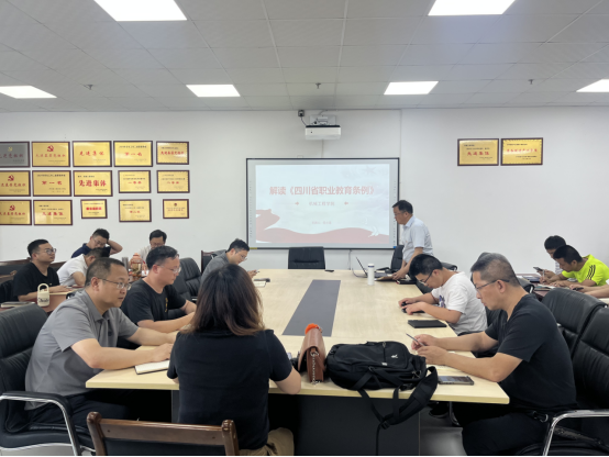 学习会上,首先对《四川省职业教育条例》对条例的各个章节进行了全面解读,重点阐释职业教育是与普通教育具有同等重要地位的教育类型,是国民教育体系和人力资源开发的重要组成部分,是培养多样化人才、传承技术技能、促进就业创业的重要途径。