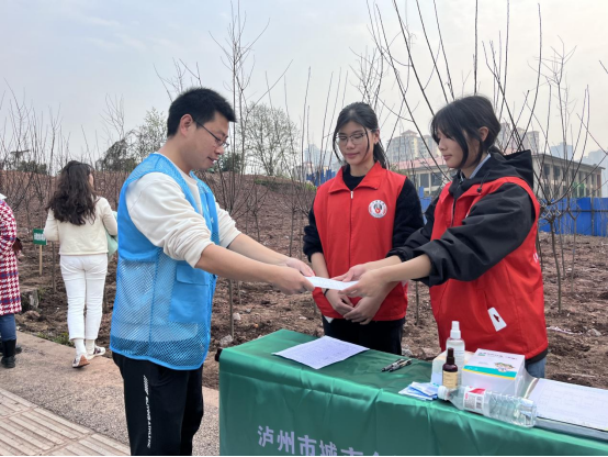 此次泸州市植树节活动,参与义务植树的有市级部门、企事业单位、社会群体等共计3000余人,种植树苗1万株,面积4万平方米。志愿者们在泸州市绿化委员会城市组工作人员的现场指导下分工协作。签到组的志愿者们负责现场义务植树单位签到、植树卡发放并耐心解释疑问;安全秩序组的志愿者们负责维护现场秩序安全;志愿服务组的志愿者们负责义务植树志愿服务、宣传和发放现场所需物资。志愿者们道道工序做得认真细致,助力为城市添绿,为春天增彩。