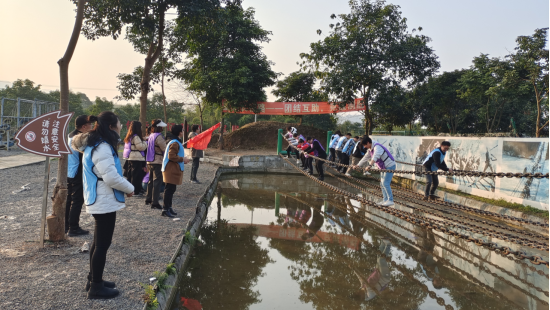 在合江尧坝迷彩记忆拓展基地,党员同志们分小组进行了军事拓展活动。在“飞夺泸定桥”“爬雪山”“过草地”等项目中,大家积极发挥先锋模范作用,争相参与,认真体验红军战士吃苦耐劳精神,感受长征中的艰难险阻,深刻领悟长征精神。