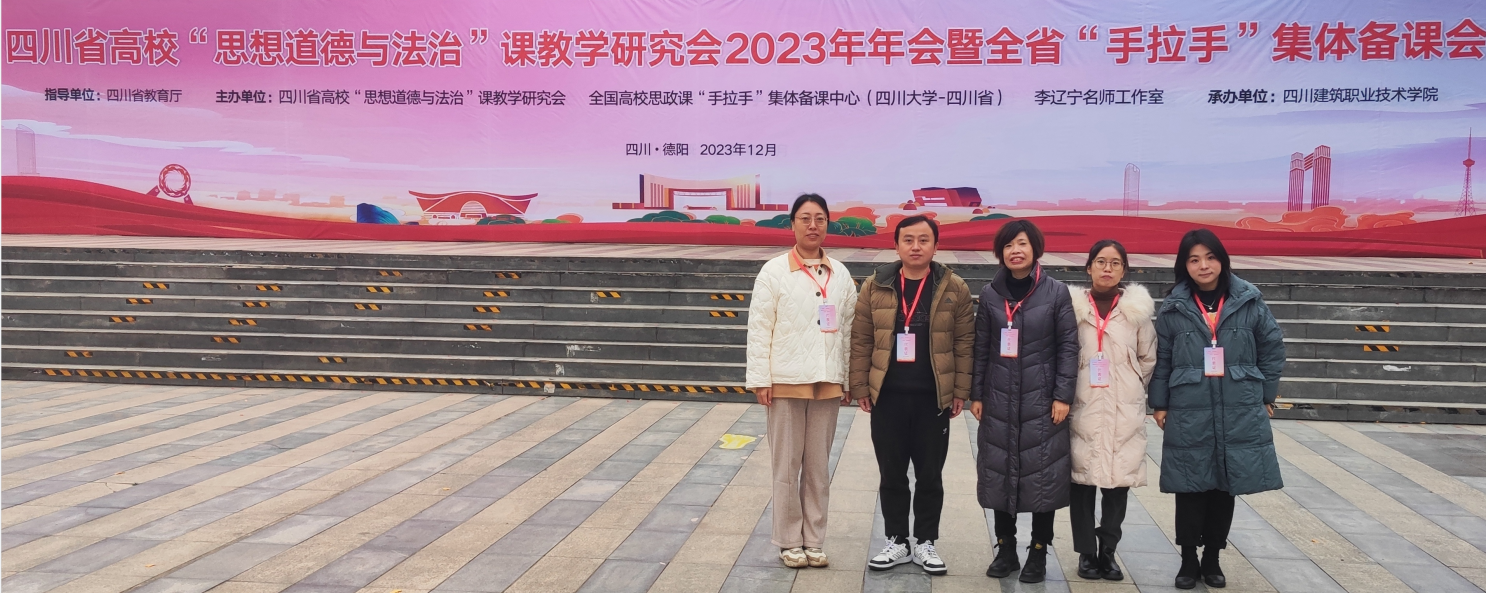 2023年12月16日至17日,四川省高校“思想道德与法治”课教学研究会2023年年会暨全省“手拉手”集体备课会在德阳举行,本次会议由四川建筑职业技术学院承办。我校马克思主义学院教师5人一行参会。本次会议分四个部分:专家主旨报告、主旨发言及经验交流、教学竞赛、实践活动。