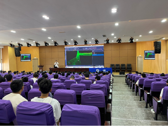 唐磊从认识无人机、无人机行业应用成果、无人机测绘应用案例三个方面向到场聆听的师生们分享了无人机技术在各行各业的应用前景和趋势。重点讲解了在数字中国背景下无人机技术的赋能特点、无人机技术在助力美丽乡村建设、城市实景三维建立、地质地矿监测、智慧工地和古建筑三维测绘方面的巨大潜力,现场师生反响热烈。