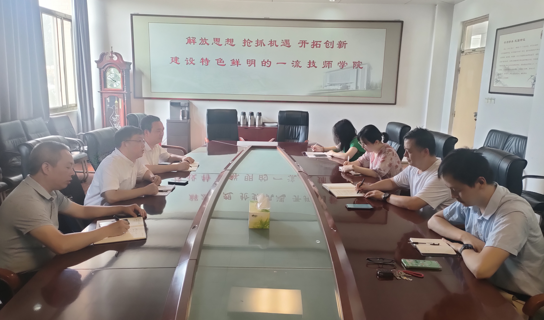 任小鸿院长首先介绍四川化工职业技术学院的基本情况,提出了此次调研的目的,希望获得山东化工技师学院的支持,会上,双方对大赛培训接待人数、场次的安排、赛前准备工作等细节问题进行了深入探讨。