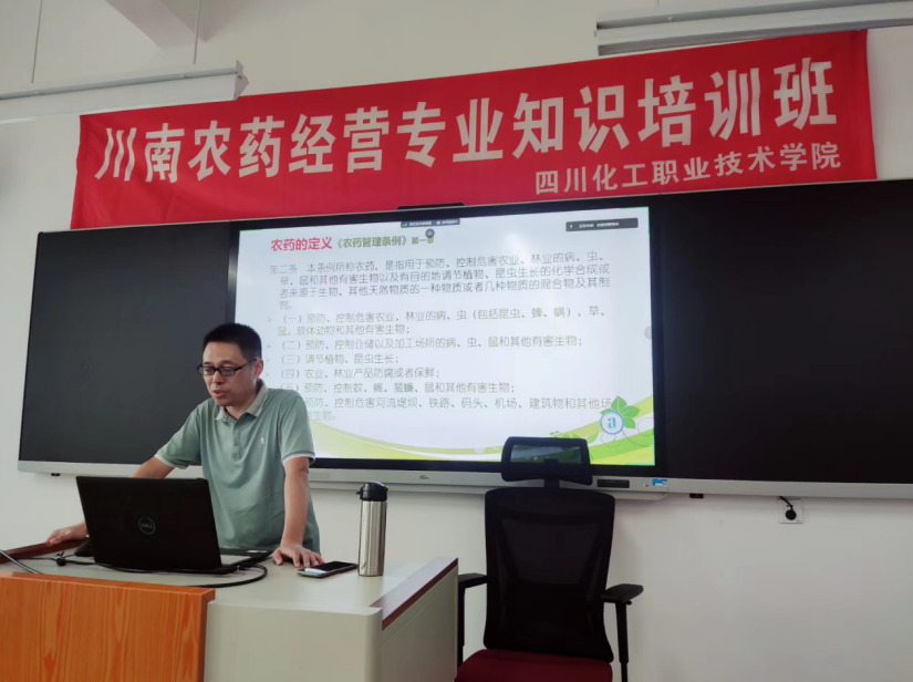 8月12日至18日,第五期农药经营人员培训在酒谷湖校区举行。培训邀请了泸州市植保站站长张志东、泸州市植保站副站长林君,合江县现代农业发展促进中心副主任税静等专家进行授课。