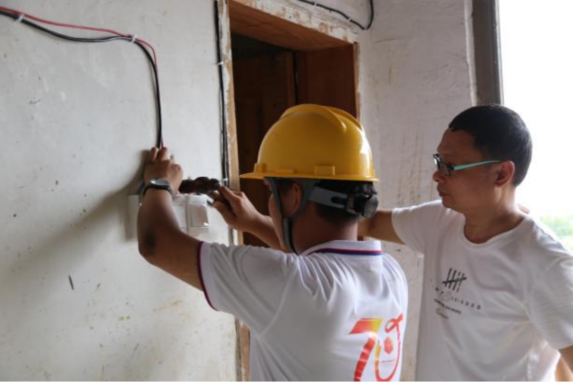 智能制造学院“三下乡”暑期社会实践第一部分是进行义务维修。实践团队入户对居民家中的电路问题进行摸排,用自己所学的专业技术给每一处需要维修的电路“把脉”,并进行拆线、引线、定线、安装开关、插座以及电灯等维修工作。
