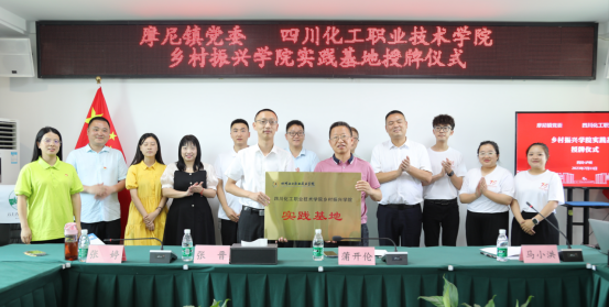 蒲开伦表示,学校要结合“乡村振兴学院”实践基地授牌,做实校地合作,做好社会实践活动。学校今年暑期派出3支团队共35名青年师生来到摩尼镇学习调研,收获满满。学校将继续和摩尼镇深化合作,发挥实践基地作用,让化院师生走出课堂,在实践中锻炼才干,发挥自身技能助力地方经济社会发展。