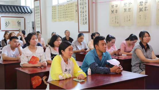 7月11日中午,距离开课时间还有1个多小时,摩尼镇国学馆门口已有很多村民早早赶来等候。金榜村村民饶娣秀:“听见有培训,我们早早就吃了午饭,一起过来了,很期待等会儿的培训。”