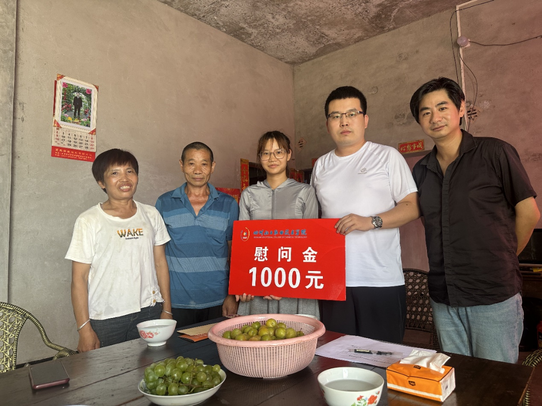 盛夏酷暑,烈日炎炎,由经济管理学院学生科长江劲带队、专职辅导员王东海老师参加的资助慰问工作队,先后前往了宜宾、自贡两地对3名家庭经济困难同学,进行了家访。