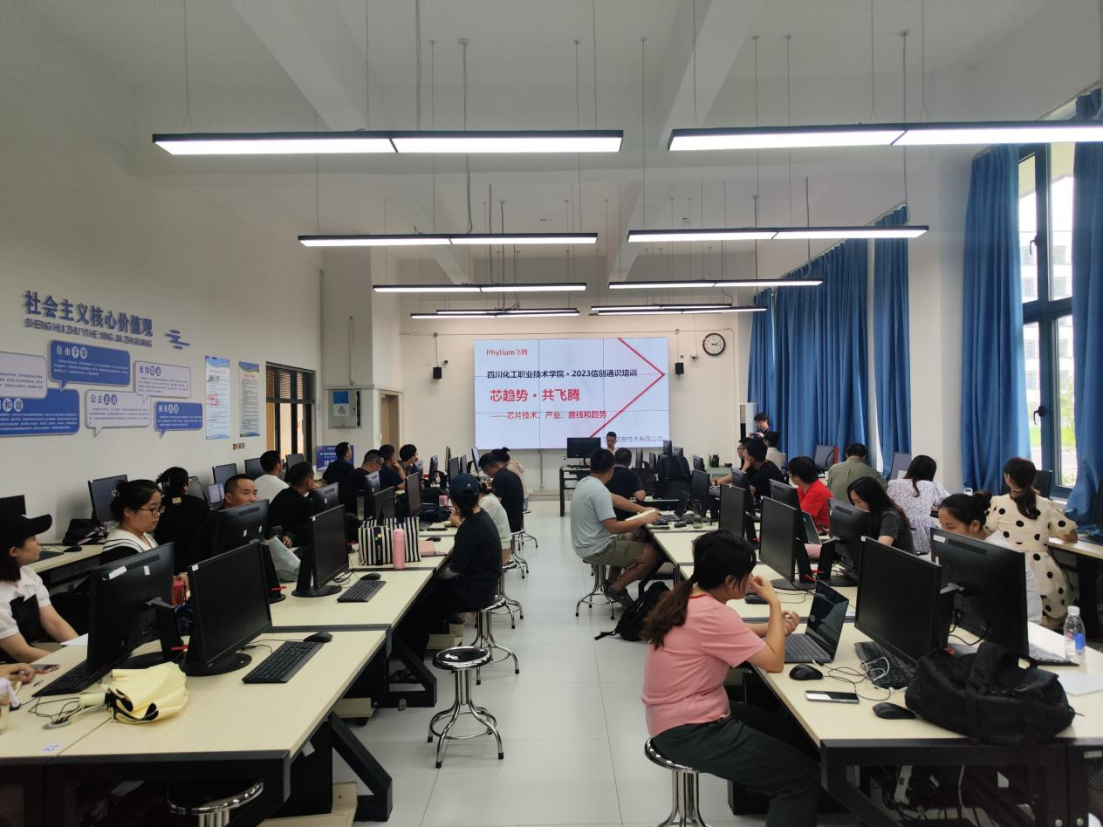 2023年7月11日,数字经济学院在8A109开展了“芯趋势·共飞腾——芯片技术、产业、路线和趋势”主题信创通识培训,本次培训邀请了飞腾信息技术有限公司的专家王毅竺主讲,学院全体教师参培。