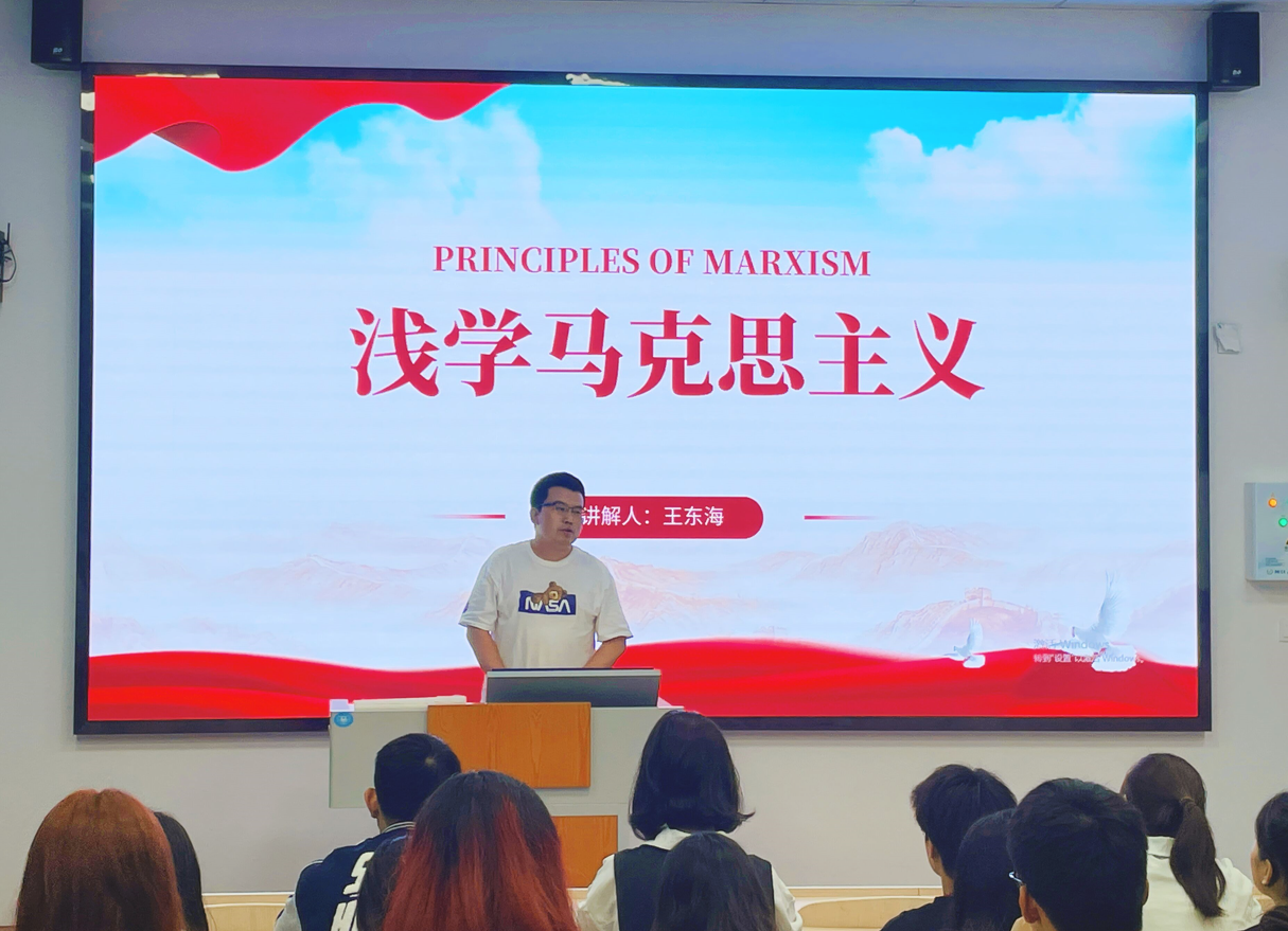 为大力弘扬理论联系实际的优良学风,真正把马克思主义看家本领学到手,努力以理论学习力提升实践指导力,由学院青年辅导员王东海老师(研究方向:马克思主义中国化研究)带来“浅学马克思主义”课程,课程中提到,学习掌握马克思主义哲学是学习掌握马克思主义的首要任务,是推进马克思主义中国化时代化的必然要求。青年们需要不断深入学习马克思主义,坚持党的领导,为实现中华民族伟大复兴贡献青春力量。