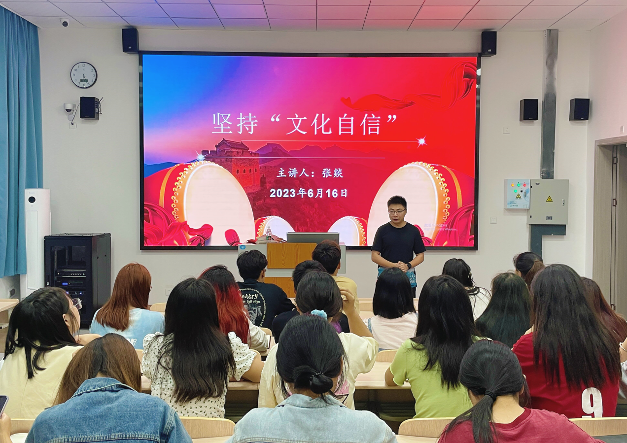 文化兴国家兴,文化强民族强。没有高度的文化自信,没有文化的繁荣兴盛,就没有中华民族伟大复兴。授课期间,学院青年辅导员张燚老师结合中国传统文化的发展历史,从多方面讲解古代文人留下的文化遗产与当代生活息息相关的案例,帮助同学们深入理解中国传统文化的博大精深。又以“习近平总书记在庆祝中国共产主义青年团成立100周年大会上的重要讲话”为引导,讲述了传统文化在新时代的重要性以及新时代的青年应当如何传承和弘扬传统文化。