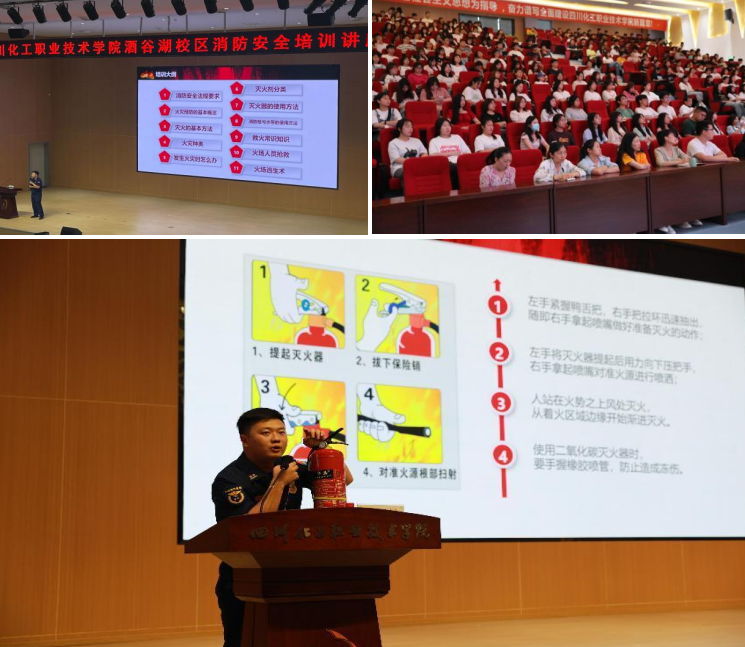 为全力做好学校消防安全工作,学校保卫处以全国第22个安全生产月为契机,围绕“人人讲安全,个个会应急”主题,于6月7日下午在酒谷湖校区开展了一次消防安全知识培训活动。本次活动得到了江阳区消防救援大队海普路消防救援站的大力支持。参训人员涉及各班级辅导员、班长、宿舍室长、后勤食堂员工、图书管理员、学生宿管中心,物业保洁人员、安保人员等共计360余人。