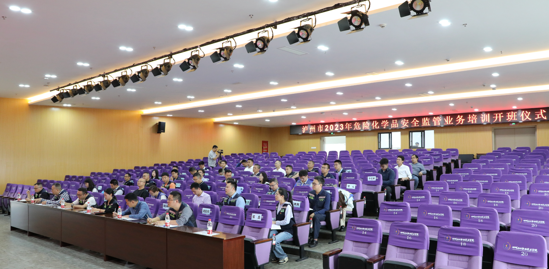 为深入贯彻落实习近平总书记关于安全生产重要指示精神,有效提高我市监管系统科学管控安全生产风险的能力,增强危化监管人员业务素质,有效提升我市危化品安全生产监管水平。5月22日,泸州市2023年危险化学品安全监管业务能力提升专题培训班在学校顺利举行开班仪式。来自泸州市的四十多名市县两级应急部门和化工园区管委会的分管领导和危化监管人员参加培训。泸州市应急管理局党委委员、副局长吴正勇,学校党委委员、副院长邓启华,应用化工学院院长徐淳等参加开班仪式。
