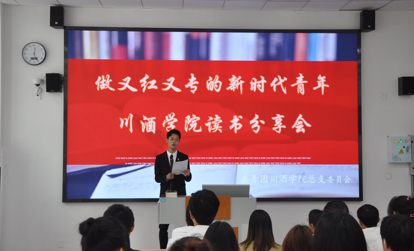 继教师代表分享结束后,学生代表上台作书籍分享。酿酒2232班李嘉豪以《林海雪原》、酿酒舍得2231班蒋岷希以《酒经》、食检2232班吉村达珍以《觉醒年代》、食检2232班彭含韵以《雅舍谈吃》等“又红又专”书籍分享自己的阅读实践,畅谈品读感悟和读书收获,进一步激发了同学们的读书兴趣和热情。