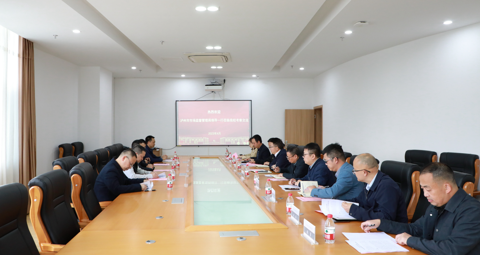 文申柳向考察组一行介绍了学校的发展历史,以及申报特种设备作业人员焊工考试机构的必要性和优势,并表示如果学校申报成功,将严格按照相关规章开展工作,为建设中国西部工匠城、推动泸州市经济高质量发展贡献化职院力量。